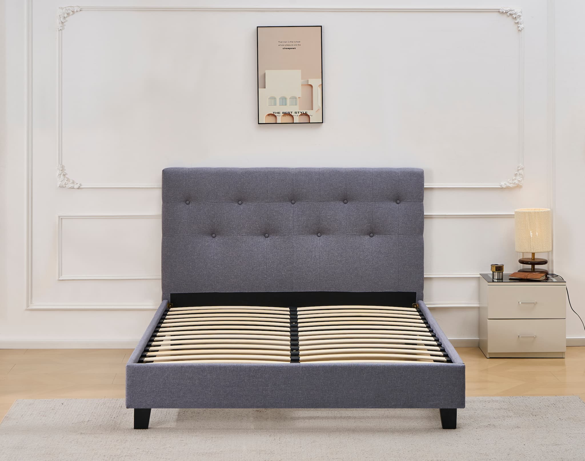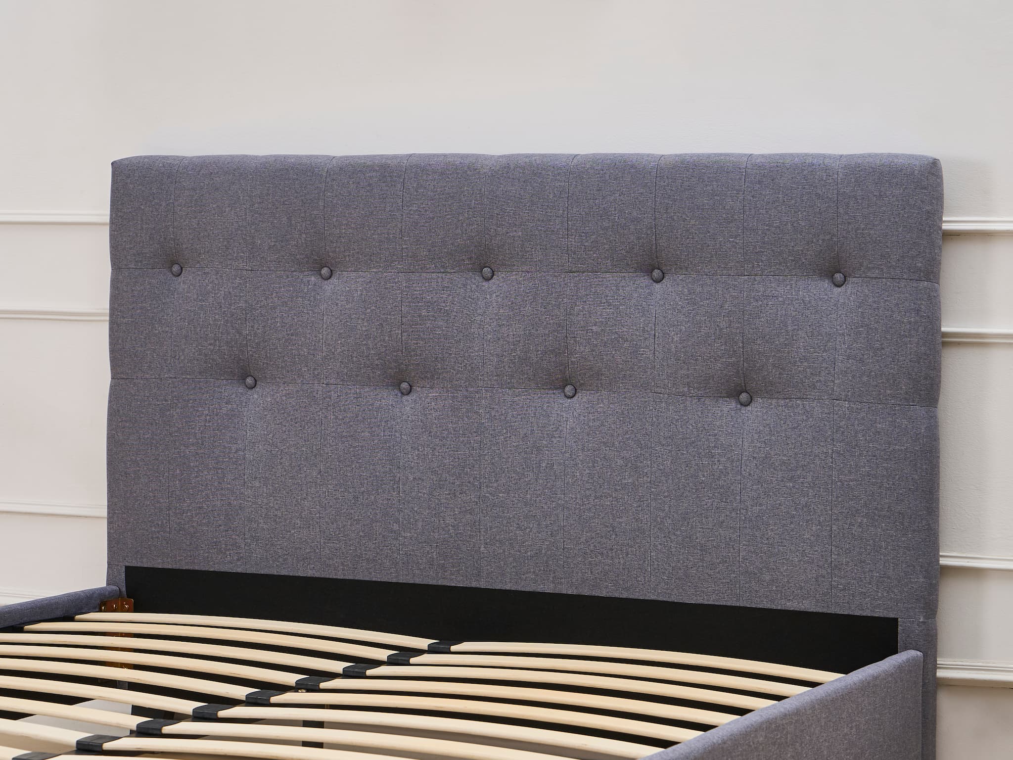 The bed features a rectangular headboard and a contemporary design, finished in grey fabric it will obviously become a centerpiece of any bedroom.