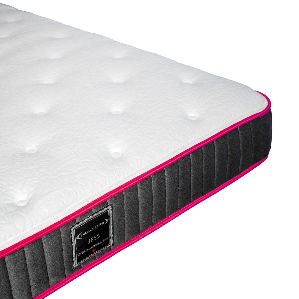 Le matelas Jess est une solution de sommeil luxueuse conçue pour un confort et un soutien ultimes. Doté d'une couche supérieure moelleuse, ce matelas enveloppe votre corps tandis que sa conception hybride associe mousse à mémoire de forme haut de gamme et ressorts ensachés pour un meilleur soulagement de la pression et une meilleure isolation des mouvements.